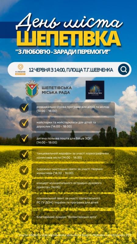 12 червня шепетівчани відзначатимуть Дні міста. Цьогоріч свято пройде під гаслом «З любов'ю - зараді перемоги».